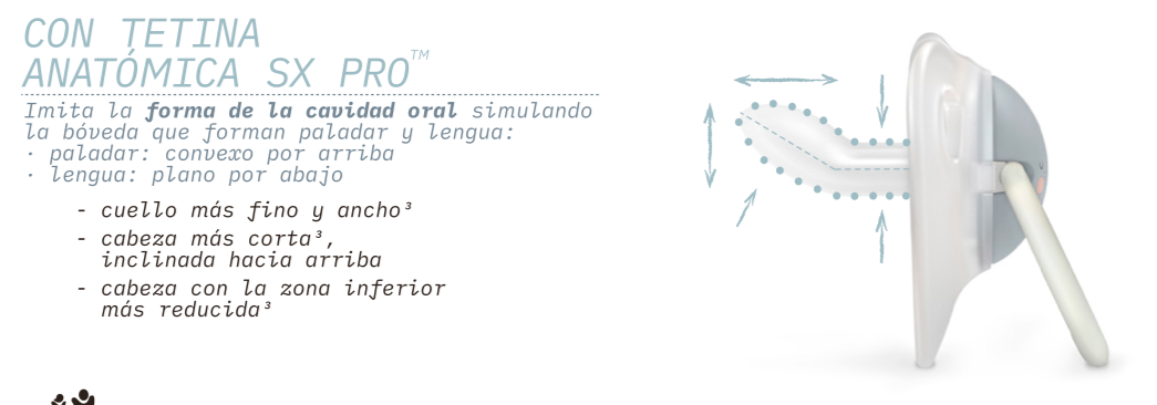 - La forma anatómica de la tetina imita la forma del pezón materno.